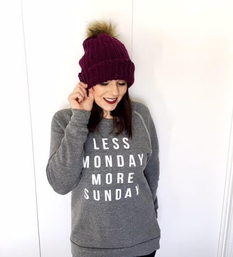 My love affair with super bulky yarn is no secret. You can whip up a hat in an hour, plus you’ll stay toasty warm. I live in the Midwest, where it gets cold and stays cold 9 months out of the year. A warm hat is crucial.